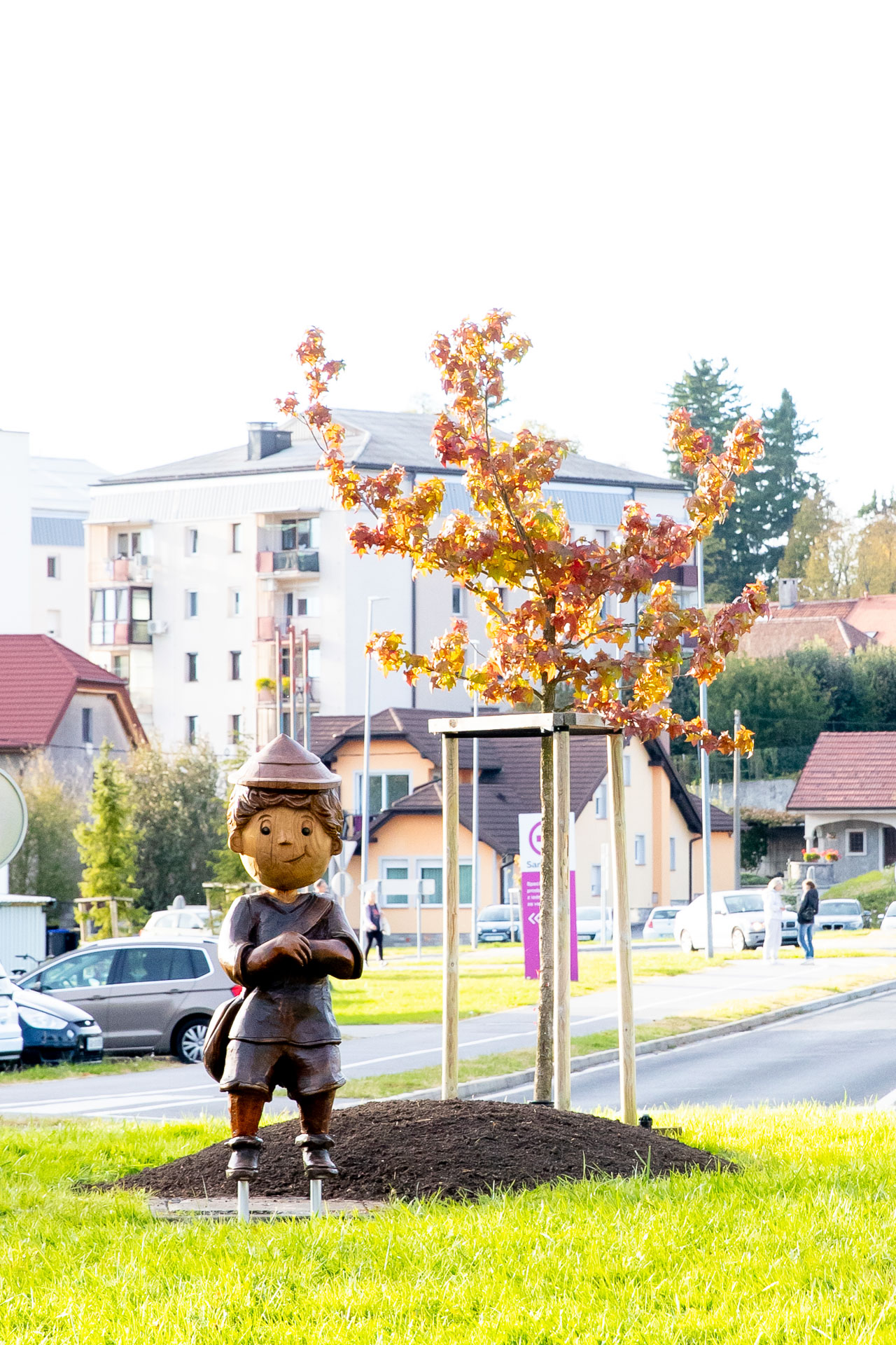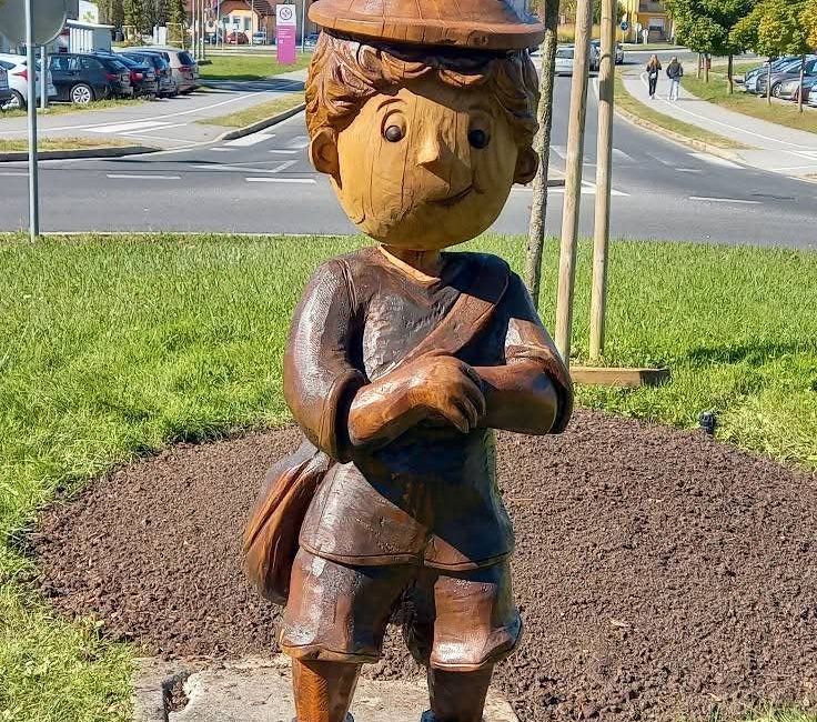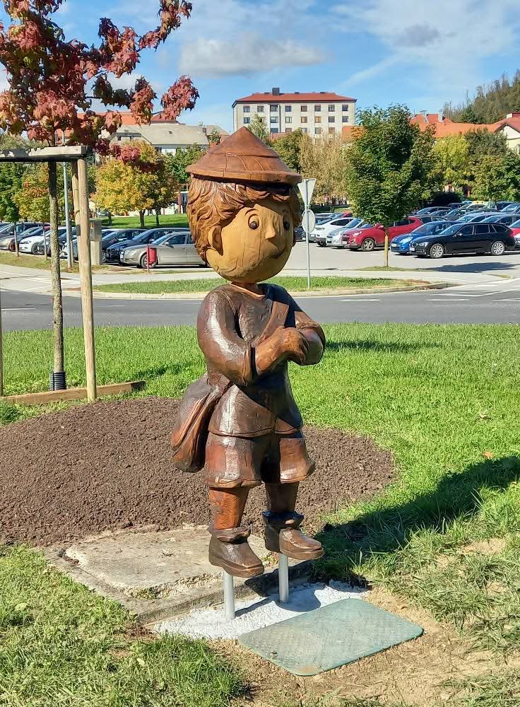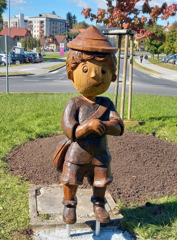 Leseni kip PASTIRČKA JAKOBA smo v krožišču postavili ob 50. obeležitvi obletnice delovanja enote Pastirček.
