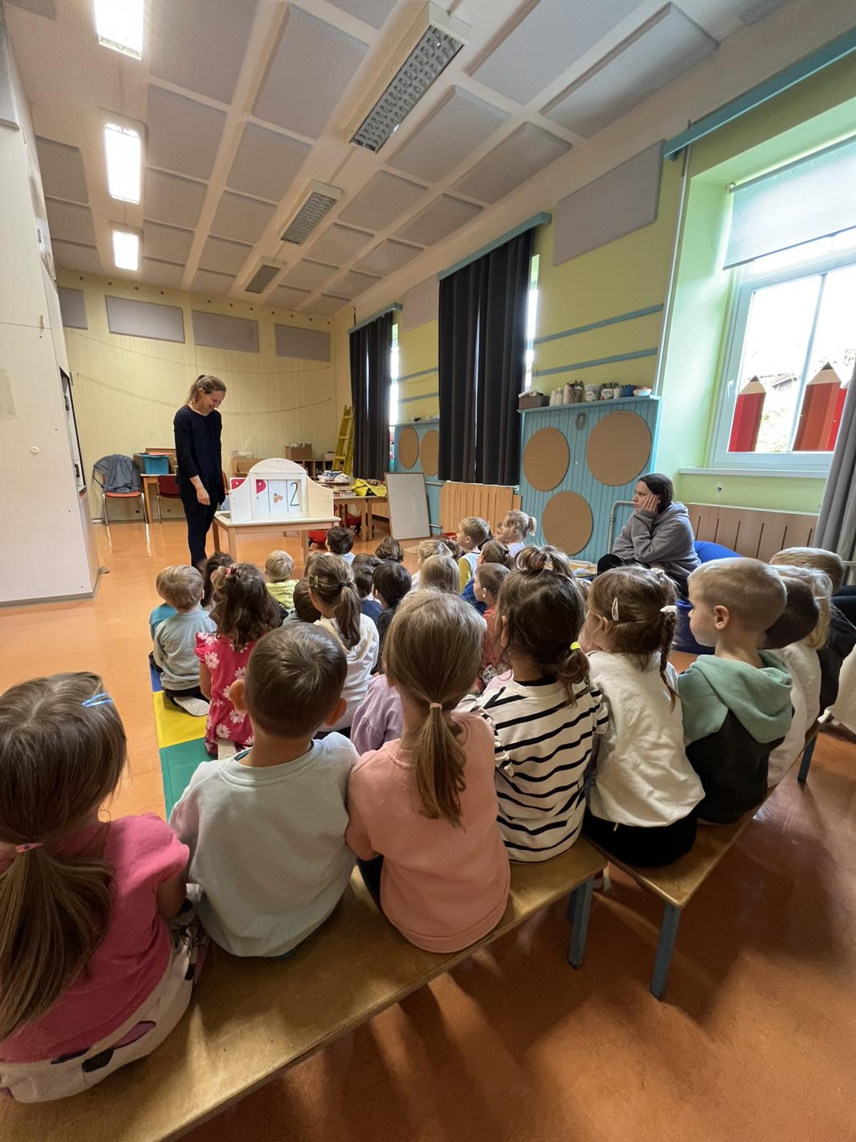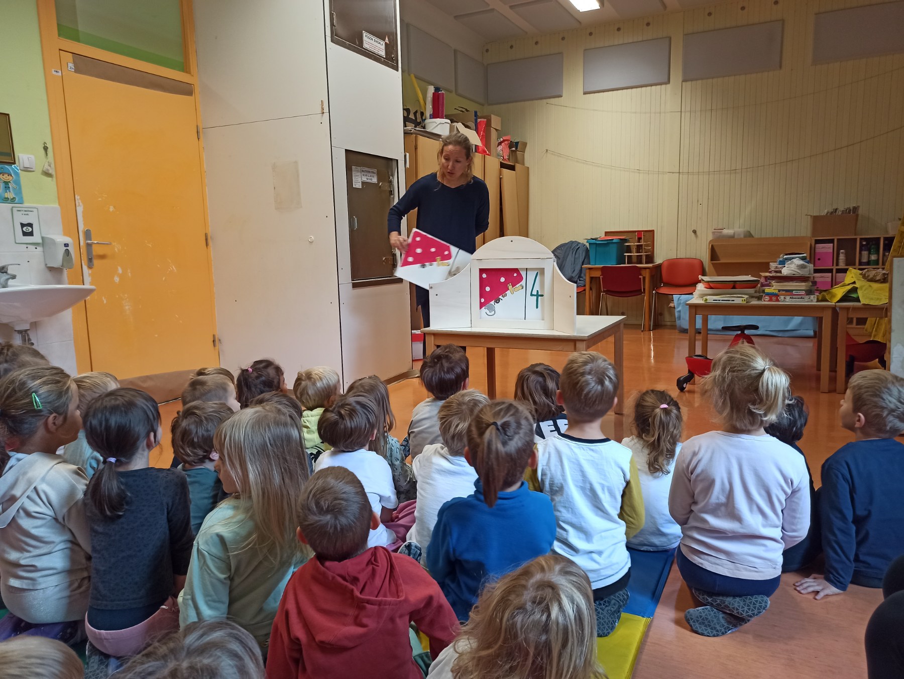 - Teden smo začeli z ogledom filma Zveze prijateljev mladine Slovenije in pogovorom o tem, kaj pomeni biti prijazen. Sledila je kamišibaj pravljica Deklica s piskrčkom (belokranjska ljudska) v izvedbi vzgojiteljice Tjaše S., ki je otroke navdušila s sporočilom o deljenju in dobroti.