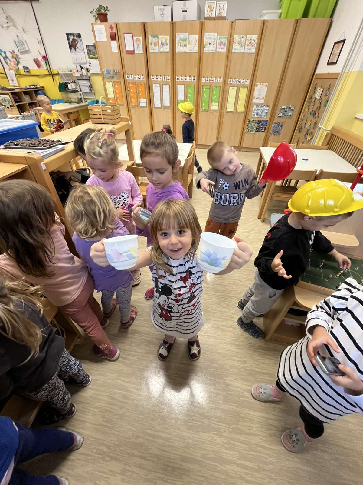 - Teden smo zaključili z menjavo igralnic in izposojo igrač, pri čemer so otroci spoznavali nove kotičke, se učili odgovornosti, deljenja in spoštljivega ravnanja z materiali.