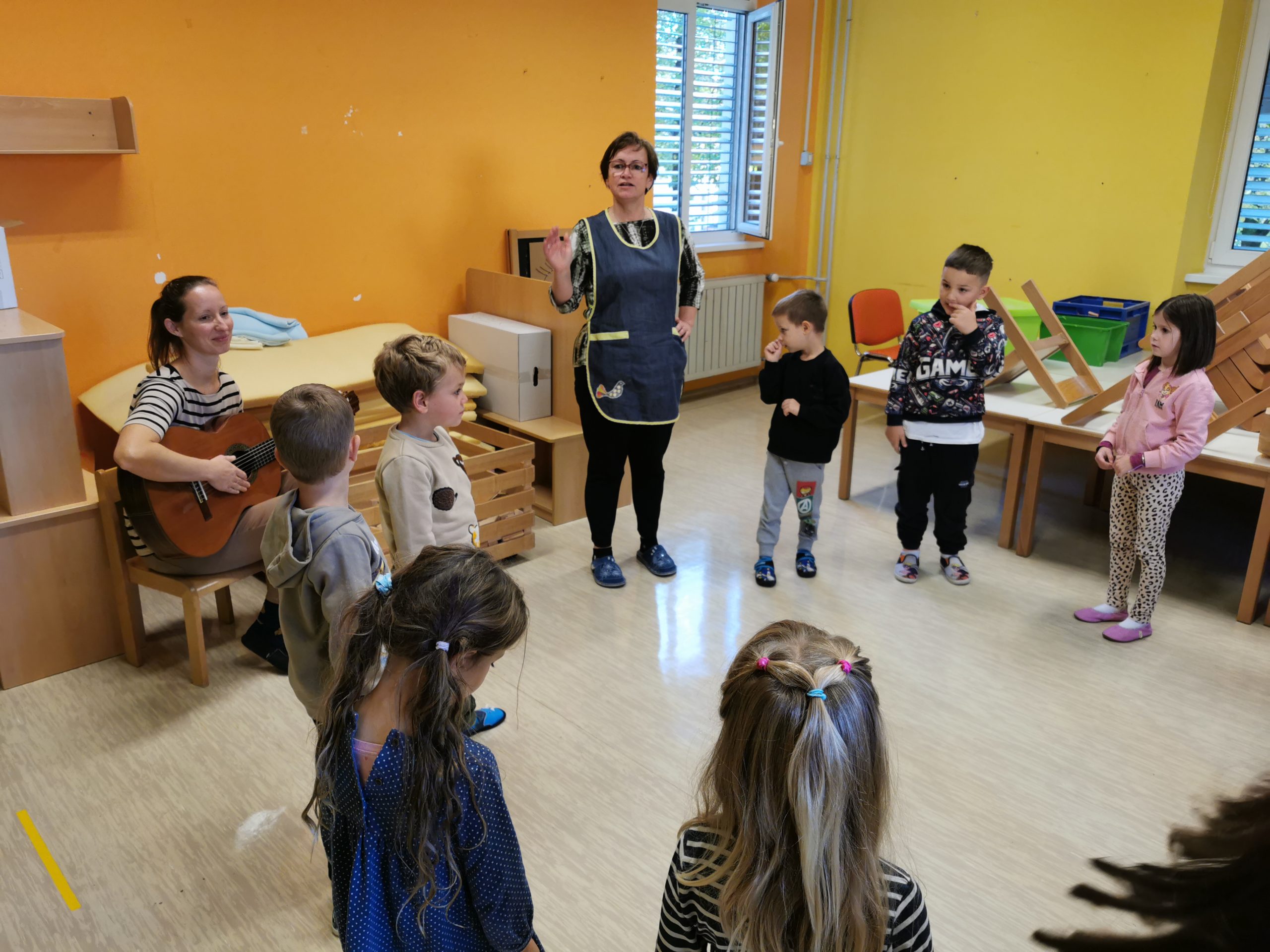 - Ob bansu o prijateljstvu Če si slabe volje, ki sta ga predstavili vzgojiteljici Tanja V. in Tjaša S., so otroci z navdušenjem peli, plesali in se veselili v družbi prijateljev.