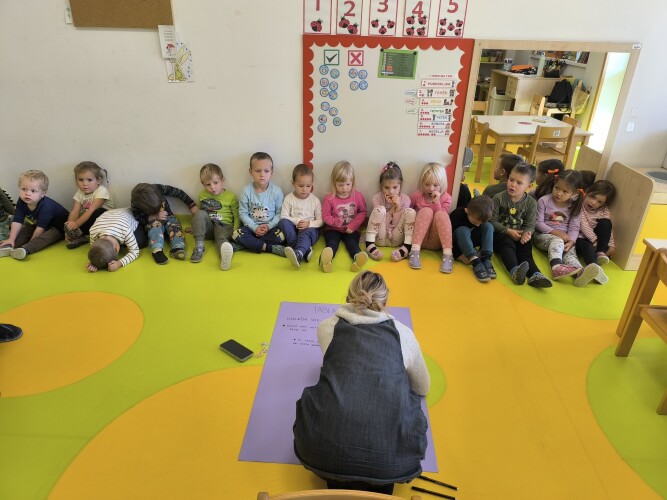 Teden otroka smo v enoti Škratek otvorili na malo drugačen način – v zelenem hodniku je vsaka vzgojiteljica obiskala sosednjo skupino in jim prebrala knjigo »Prijatelj kot si ti.« Otroci so tako spoznali, da lahko prijaznost delimo tudi s preprosto gesto, kot je branje zgodbe prijateljem.