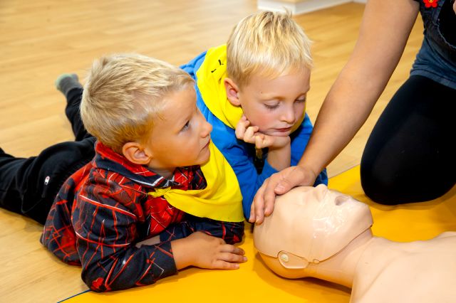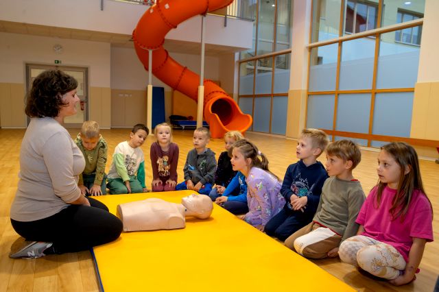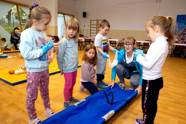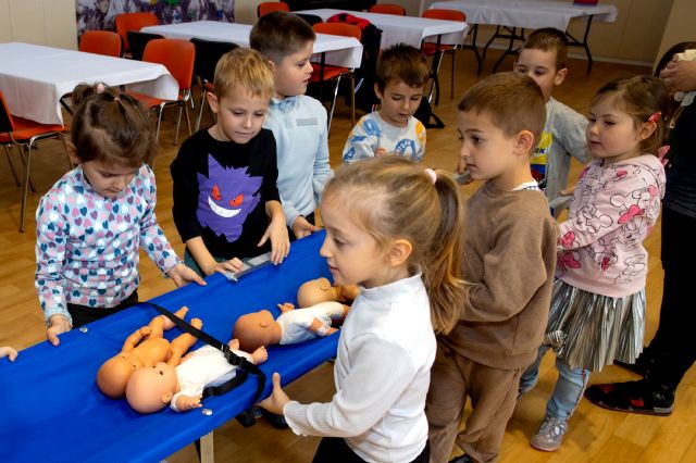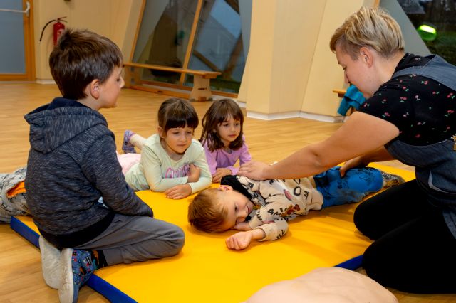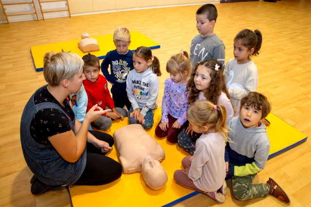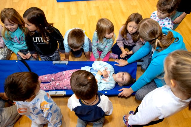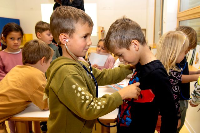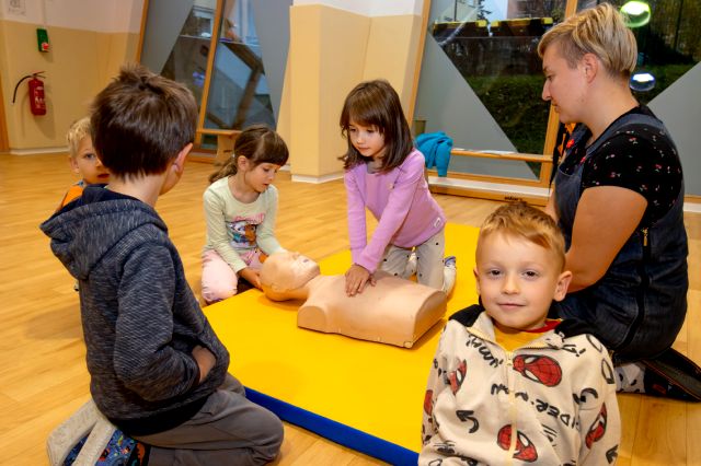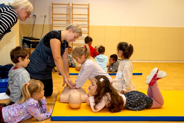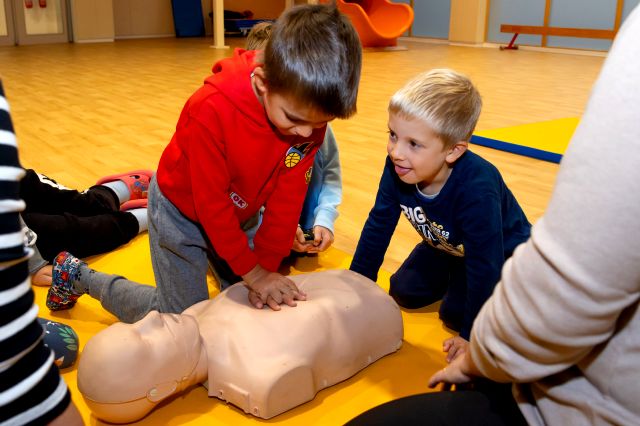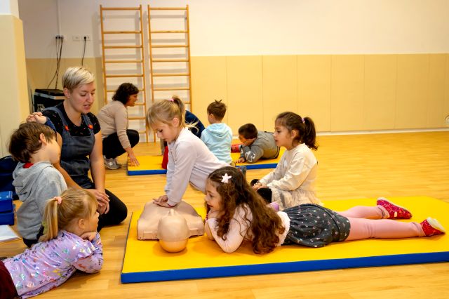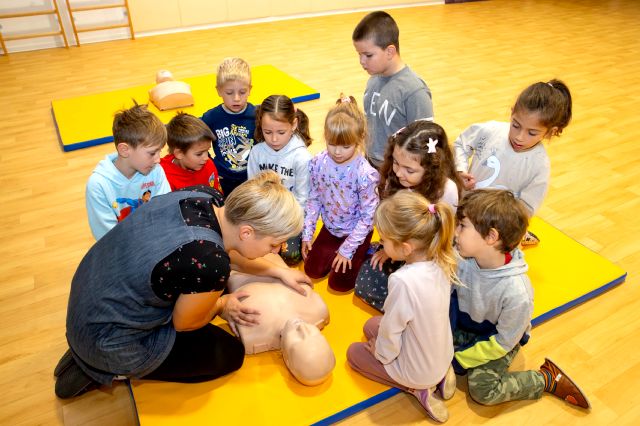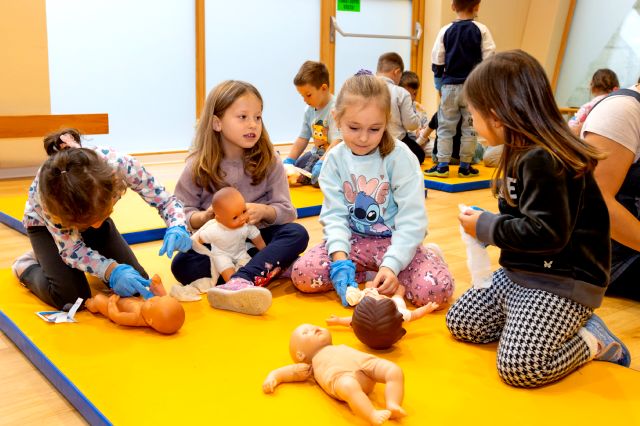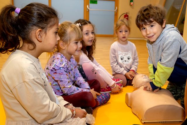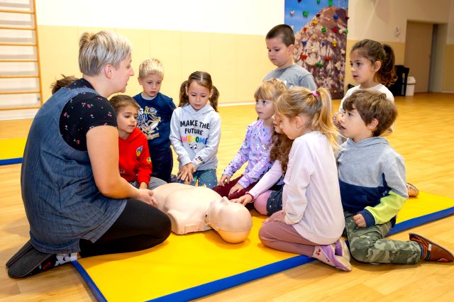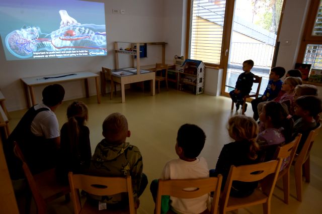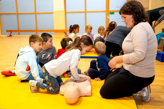 V telovadnici so otroci na lutkah vadili povijanje ran ter temeljne korake oživljanja – prva izkušnja, ki je v mnogih vzbudila veliko zanimanja in odgovornosti. V kabinetu so spoznavali delovanje srca, poslušali njegovo bitje s stetoskopom in se pogovarjali o tem, zakaj je srce naš najpomembnejši organ.