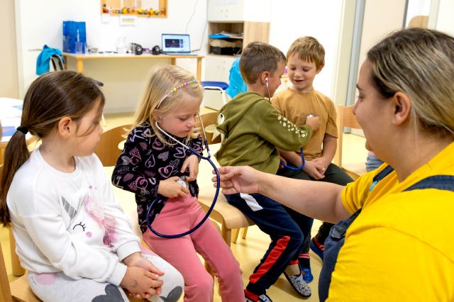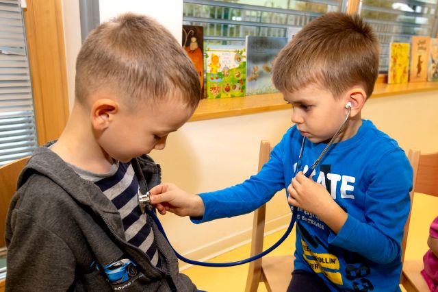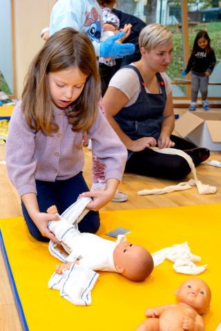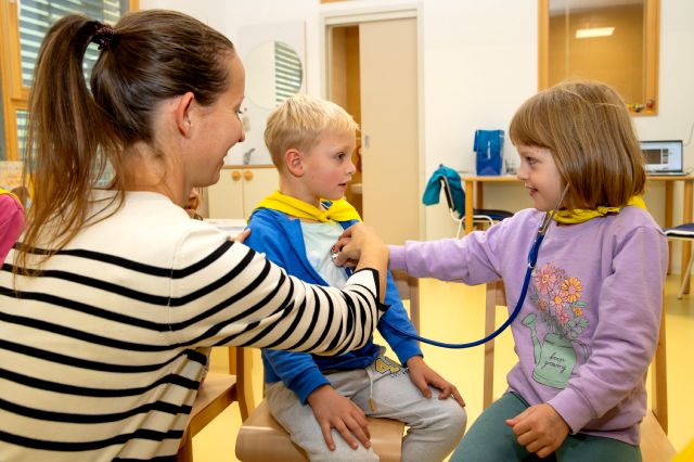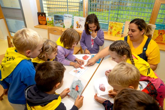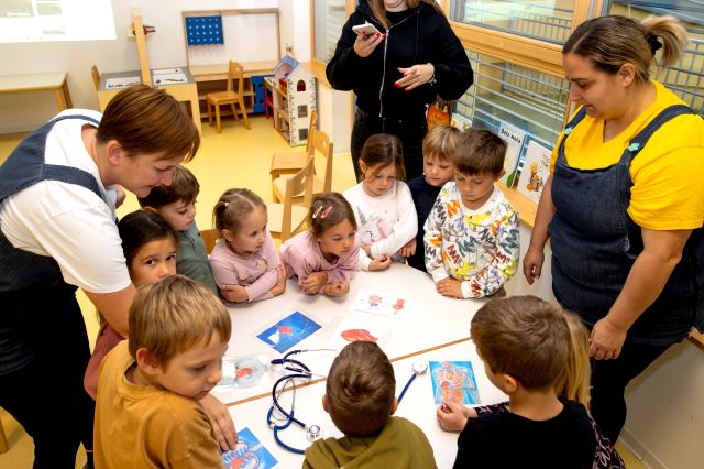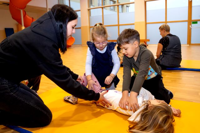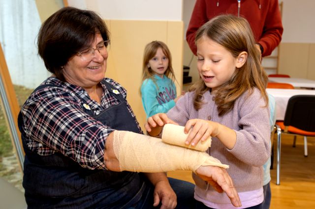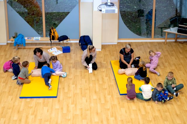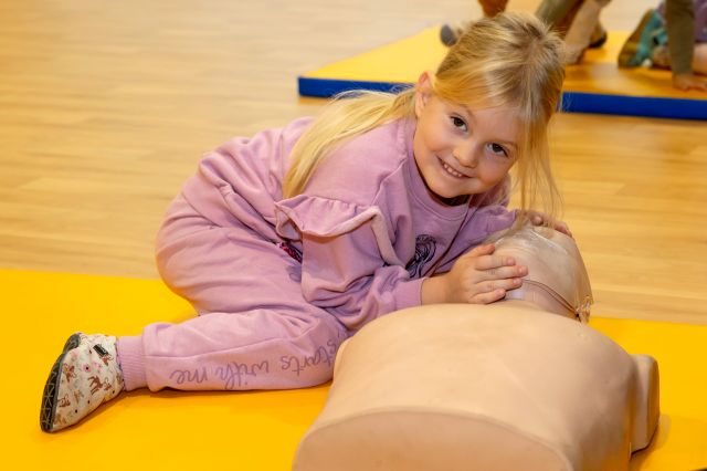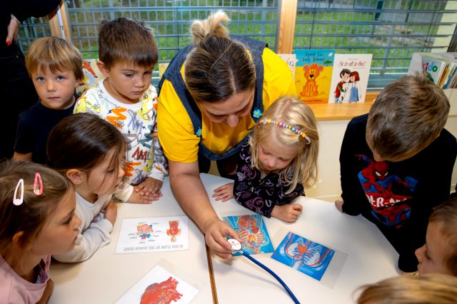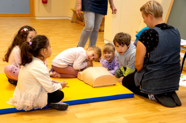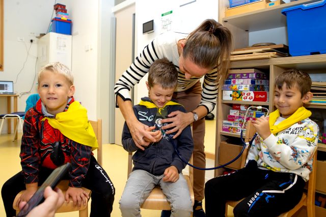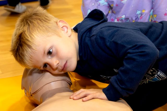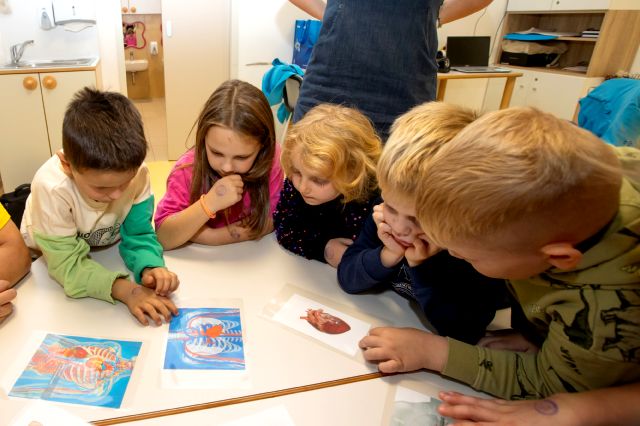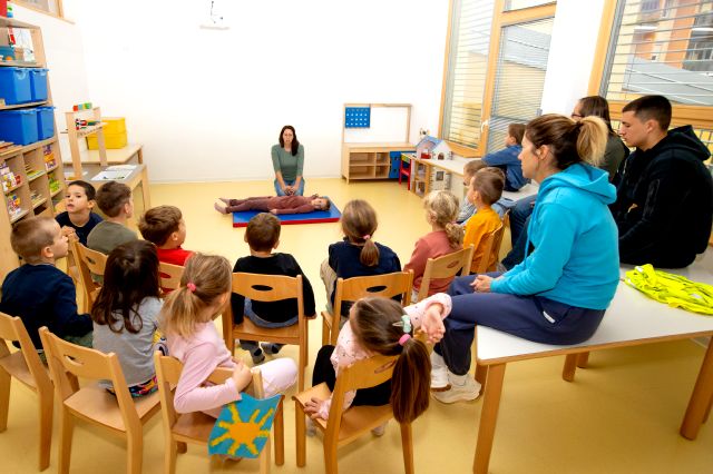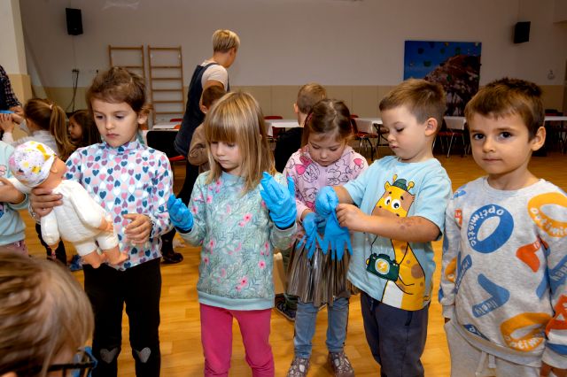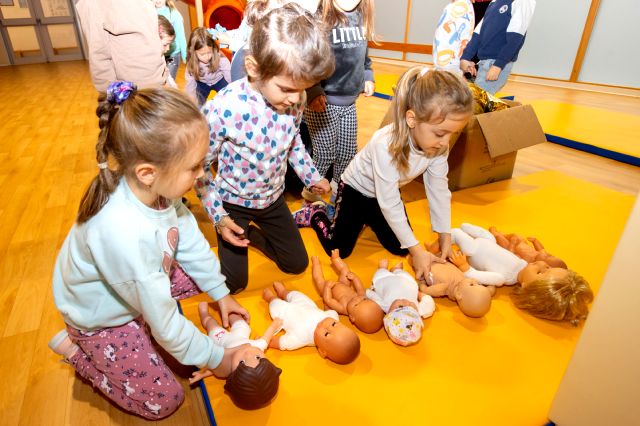 V telovadnici so otroci na lutkah vadili povijanje ran ter temeljne korake oživljanja – prva izkušnja, ki je v mnogih vzbudila veliko zanimanja in odgovornosti. V kabinetu so spoznavali delovanje srca, poslušali njegovo bitje s stetoskopom in se pogovarjali o tem, zakaj je srce naš najpomembnejši organ.