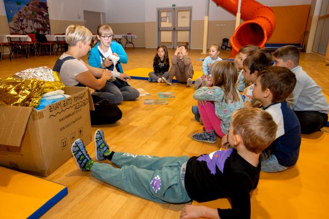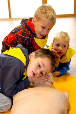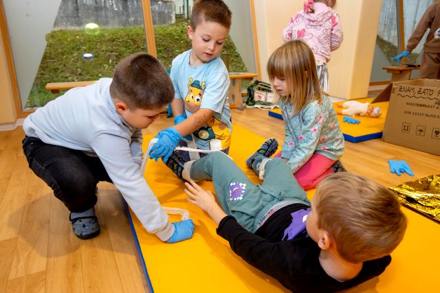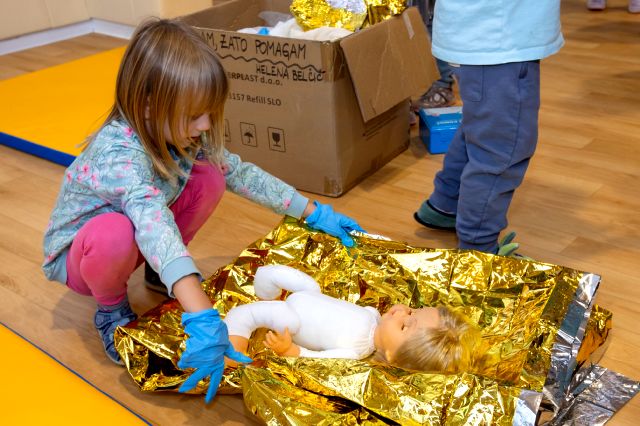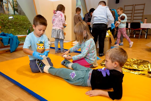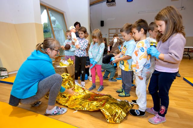 Tudi v letošnjem šolskem letu smo v okviru projekta »Znam, zato pomagam« otrokom v starosti 5–6 let omogočili, da na igriv in izkustven način spoznajo osnove prve pomoči, pomen pomoči sočloveku in delo reševalcev.
