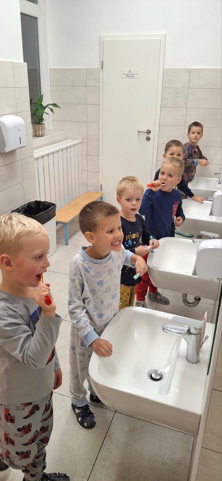 Čas za spanje je prišel zelo hitro zato so se otroci preoblekli v svoje pižame, umili zobke, se stisnili k ljubkovalni igrački, od vzgojiteljic dobili poljubček za lahko noč in sladko zaspali. Jutro je hitro prišlo in že smo morali vstati, pospraviti ležalnike in pižame. Pred odhodom domov so še pozajtrkovali in se poslovili z željo, da bi lahko nočitev ponovili…