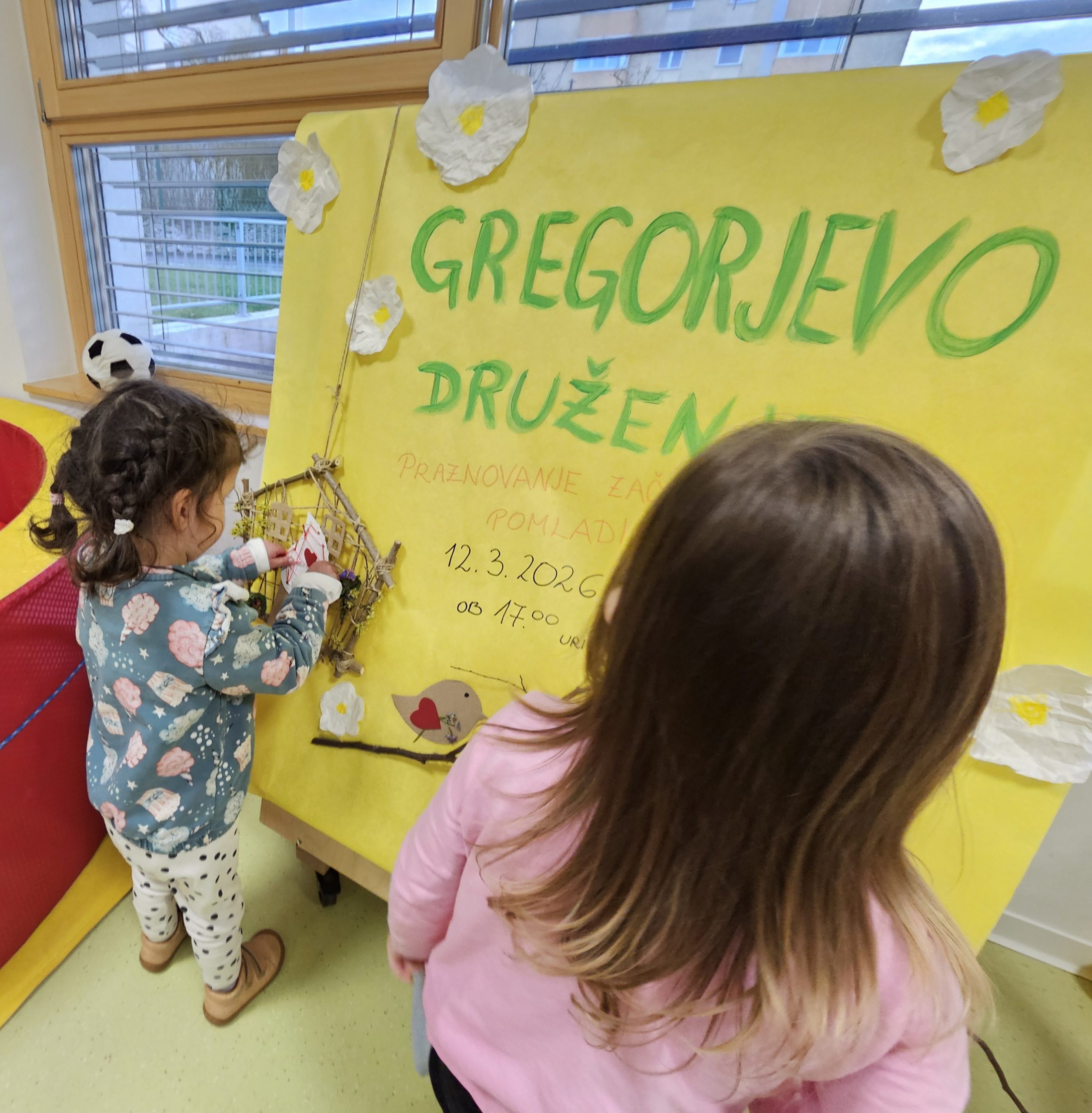 12.marca obeležujemo Gregorjevo, praznik, ki po ljudskem izročilu naznanja prihod pomladi in daljših dni. Praznik je povezan z veseljem, naravo in prebujanjem novega življenja. V skupini Hišni škrati smo ob tej priložnosti pripravili popoldansko ustvarjalno druženje, na katerem so se v velikem številu zbrali otroci, starši, bratci in sestrice. Prostor je napolnila otroška živahnost, smeh in toplina.