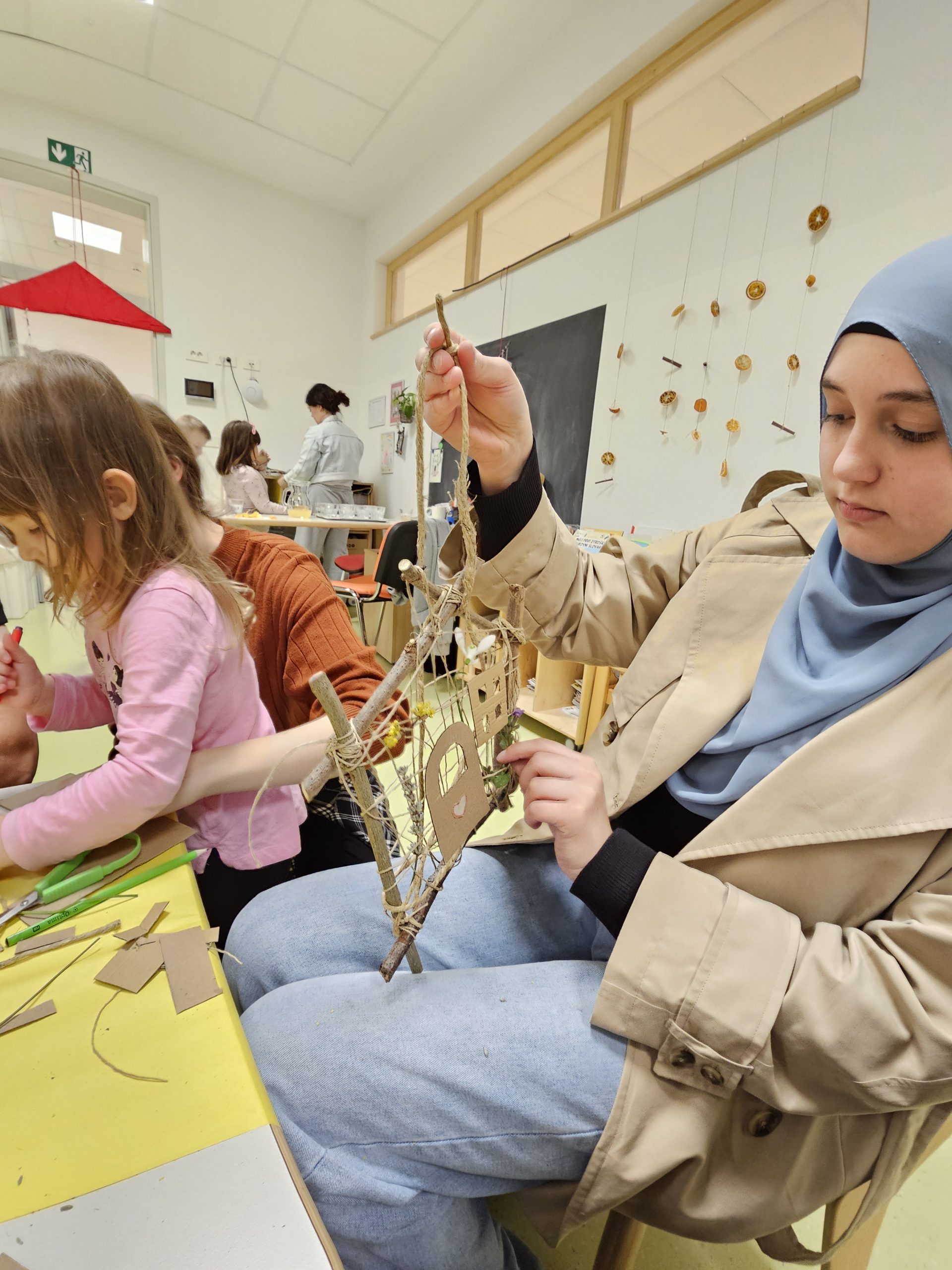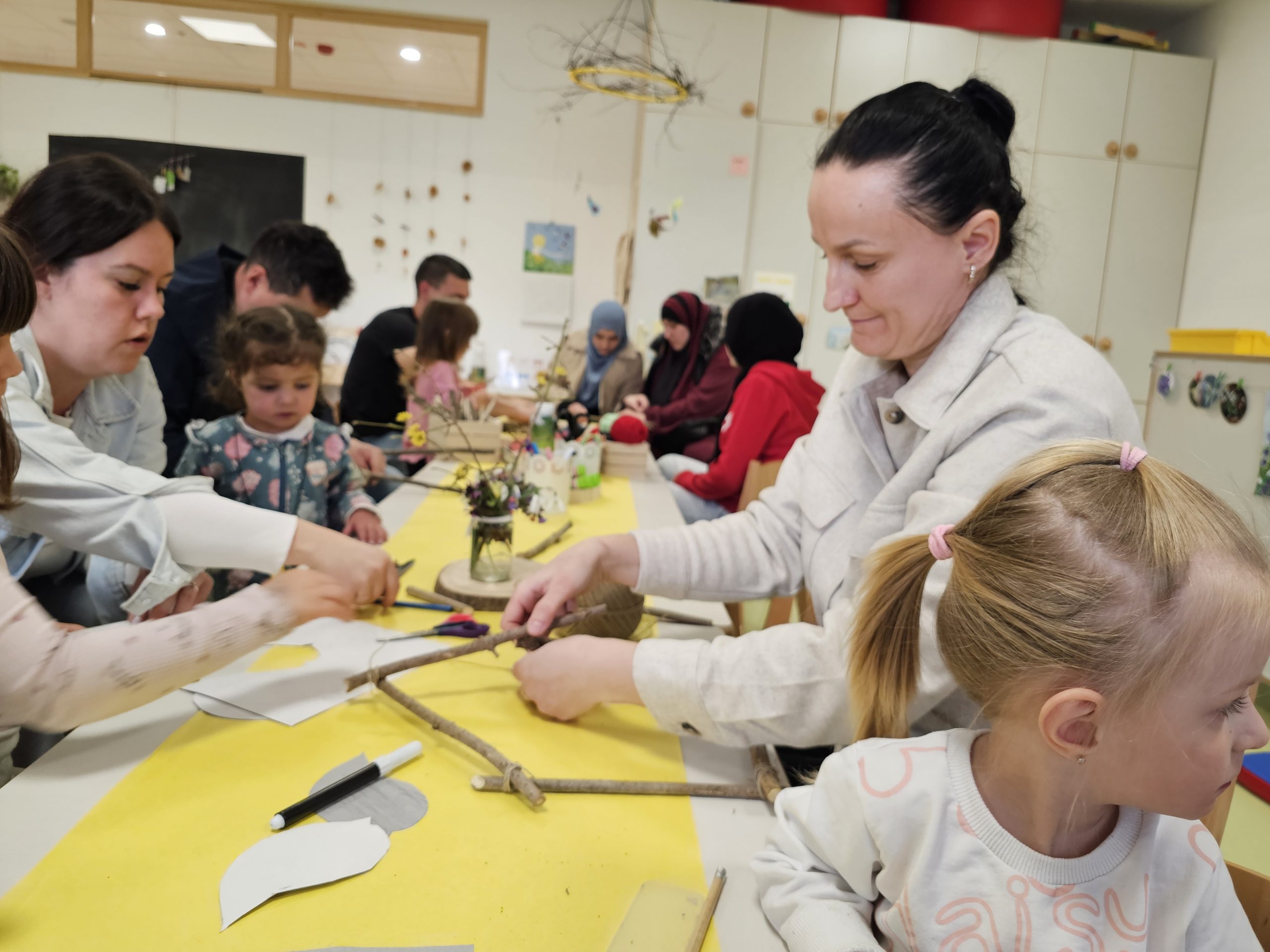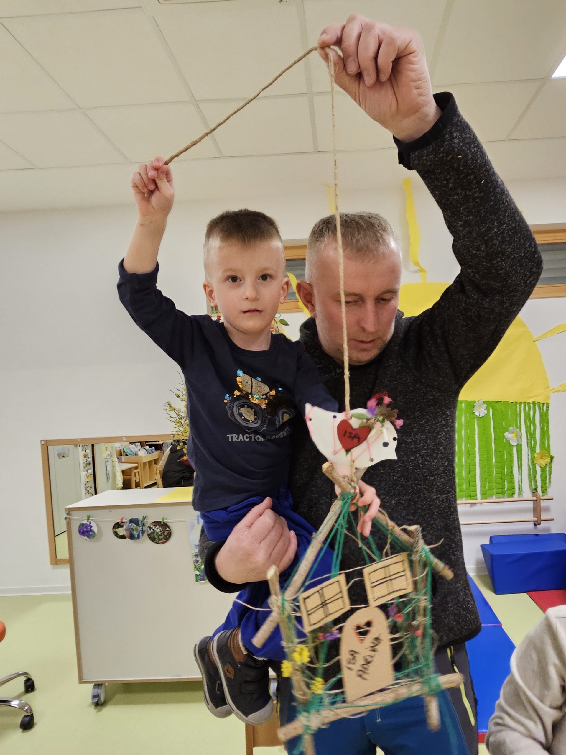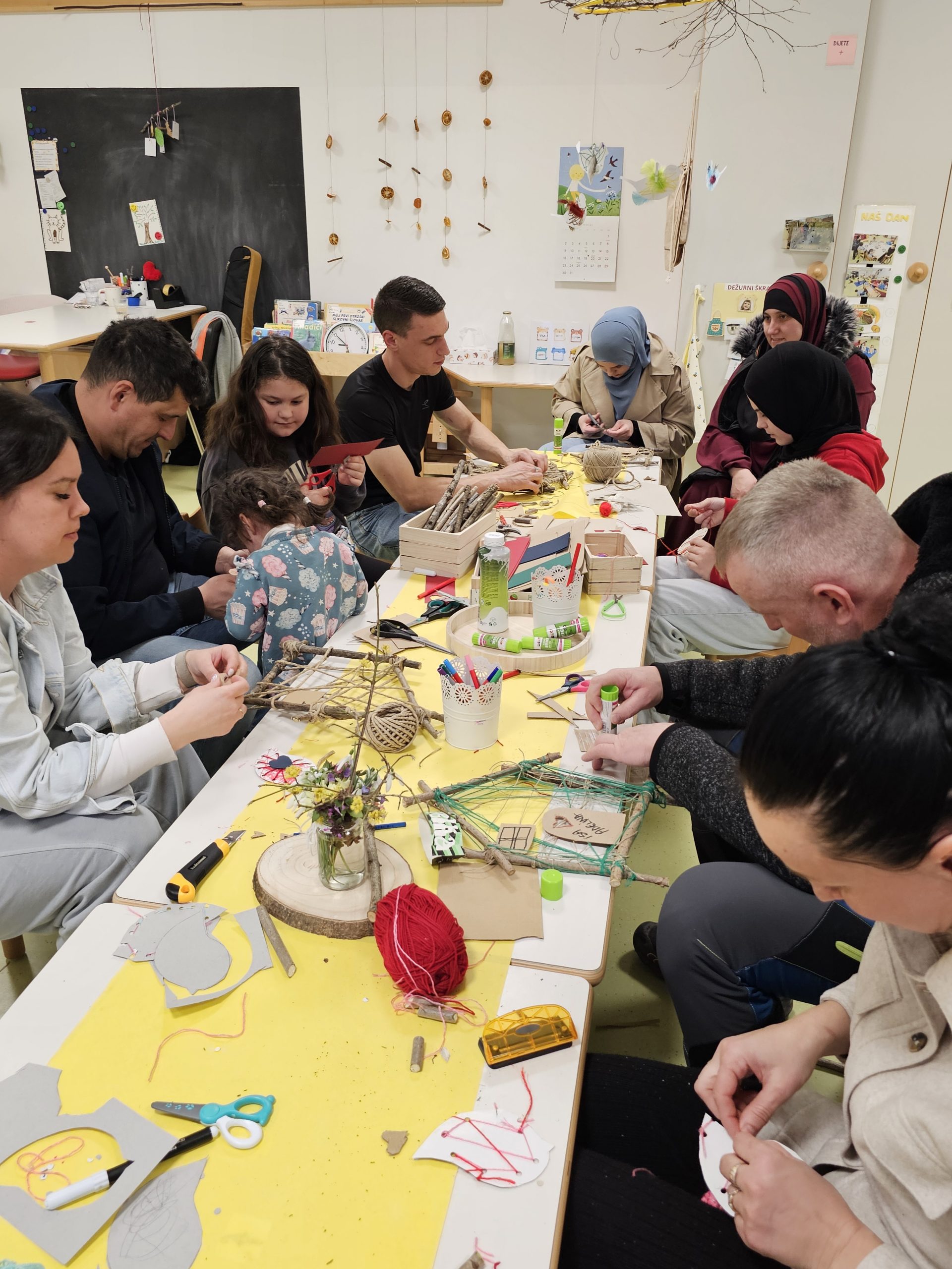 Družine so z veliko ustvarjalnosti izdelovale hiške in ptičke iz vejic in drugih naravnih materialov. Hiške so nato okrasili s svežim pomladnim cvetjem, ki je prineslo barve in vonj novega letnega časa. Vsaka hiška je bila nekaj posebnega in je odražala skupno delo, domišljijo ter veselje.