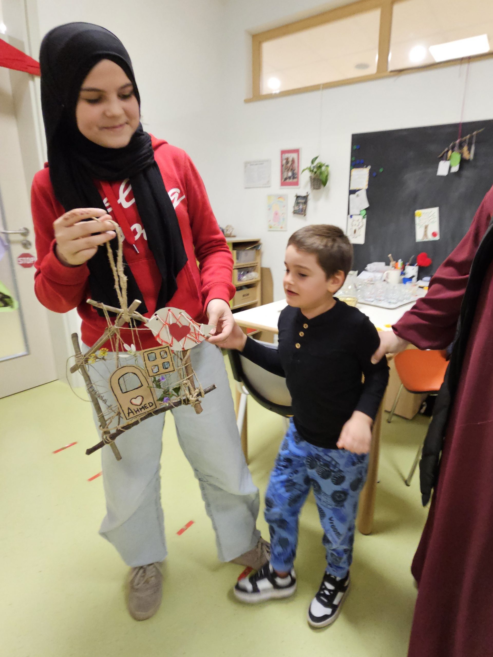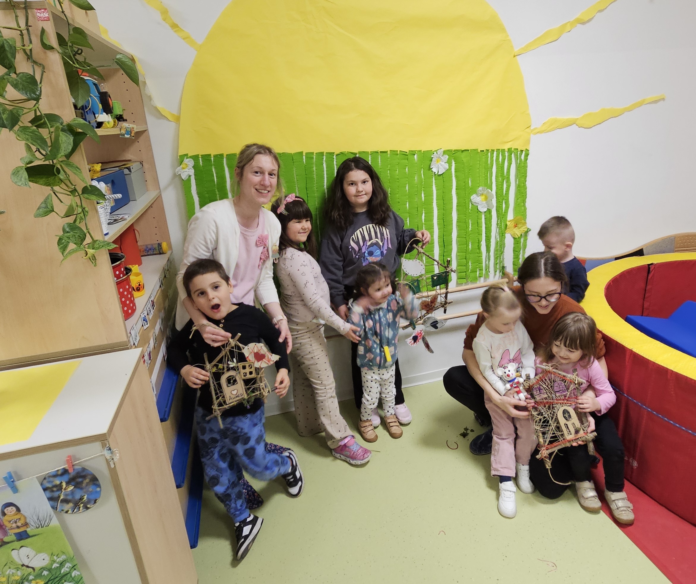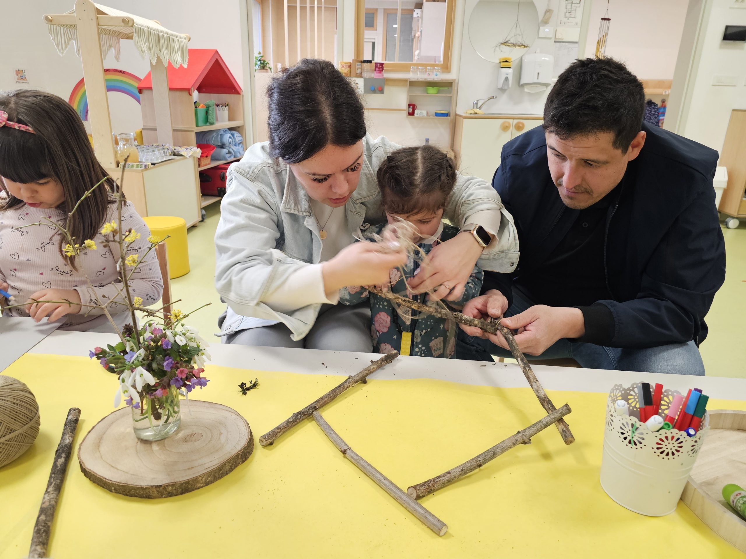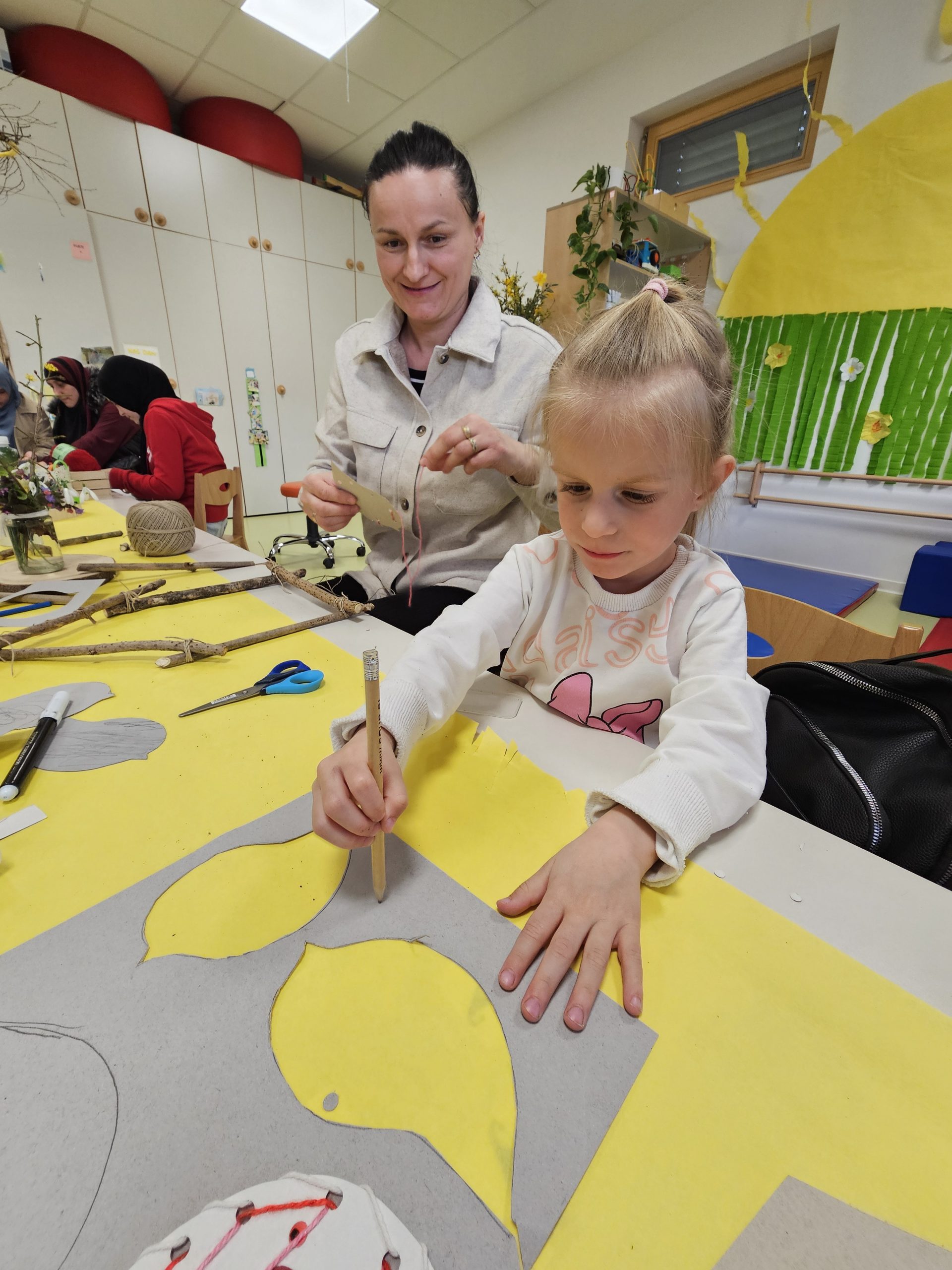 Družine so z veliko ustvarjalnosti izdelovale hiške in ptičke iz vejic in drugih naravnih materialov. Hiške so nato okrasili s svežim pomladnim cvetjem, ki je prineslo barve in vonj novega letnega časa. Vsaka hiška je bila nekaj posebnega in je odražala skupno delo, domišljijo ter veselje.