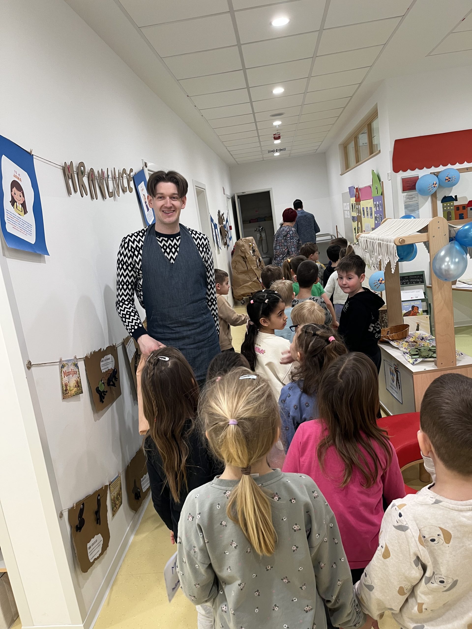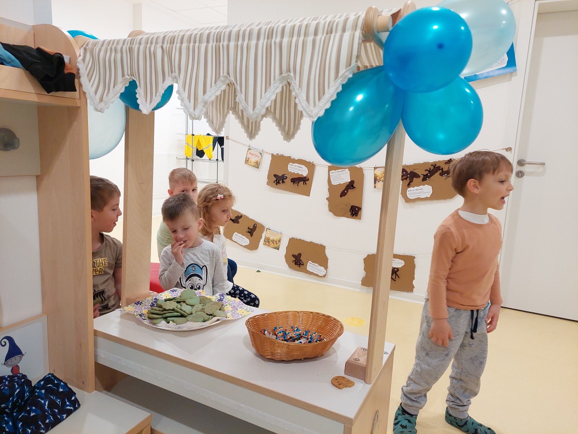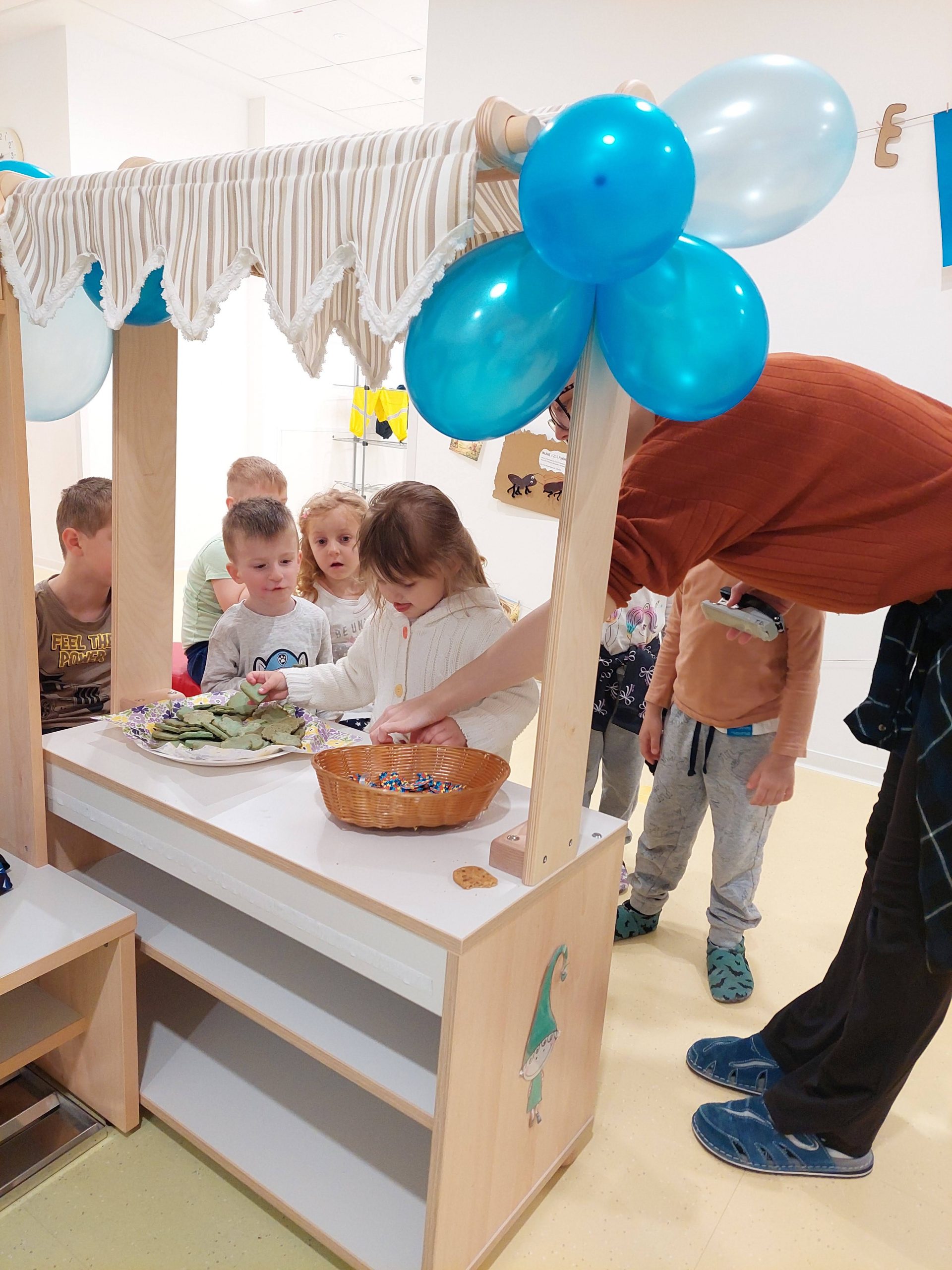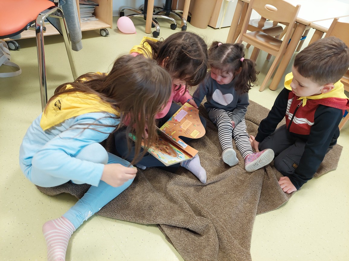 Preko pogovora so odkrivali, kaj je avtizem in kako svet doživljajo njihovi prijatelji, ki morda komunicirajo in čutijo drugače. Da bi to razumevanje prelili v dejanje, so obiskali skupino Hišni škrati (otroci v prilagojenem programu), ki se nahajajo v našem vrtcu v rdečem hodniku, kjer so jih zelo toplo sprejeli s čudovito pripravljeno stojnico in posebej urejeno polico s slikanicami, ki otrokom na prijazen način razlagajo avtizem in drugačnost.